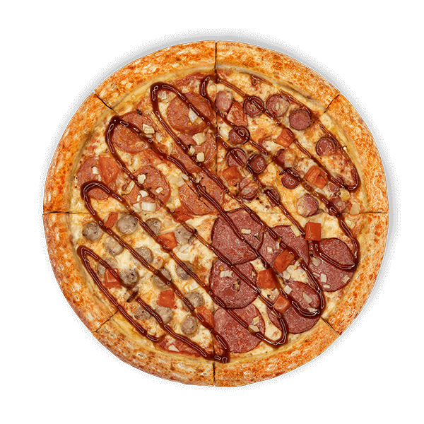 251,00 ₴Соус Маринара, сир Моцарела, салямі, чорізо, мисливські ковбаски, мюнхенські білі ковбаски, цибуля, томати, соус BBQ. Діаметр: 30 см. Вага: 590 гр.