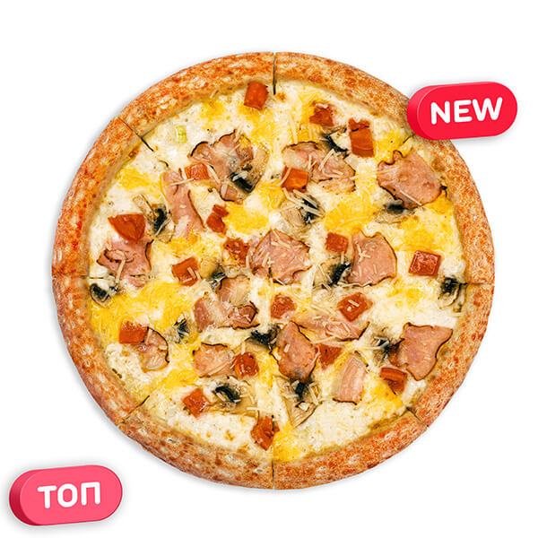 290,00 ₴Вершковий соус, сир Моцарела, бекон, куряче філе запечене, томати, соус Ранчо(часниково-майонезний)